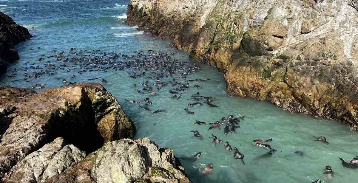 “I was amazed to see them all piled in there, getting tossed around like they were in a washing machine,” Gerry McChesney, manager of the Farallon Islands National Wildlife Refuge, told SFGATE in an email. “They looked pretty content and like they were having a good ol’ time.”