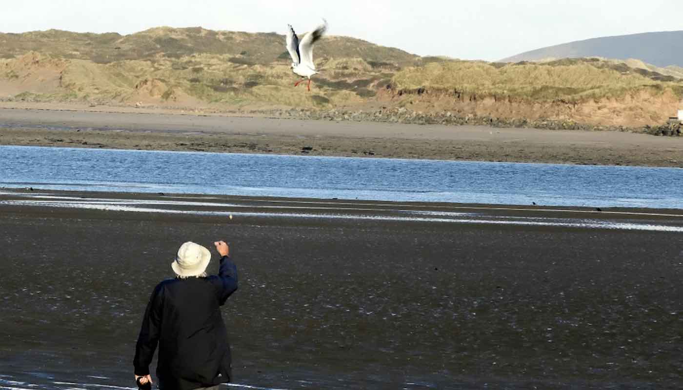 “No hay muchas gaviotas de cabeza negra en la Playa de Insto. Si hay más de 20 me sorprendería”. Añadió. “ Alienta al resto a que se acerquen, pero él es el único que viene hacía mi y se queda allí y flota.