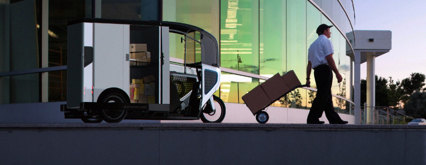While a van can carry four times as many boxes as an ONO PAT, the delivery container that goes on the PAT can be loaded by hand at an ONO “delivery hub” and be waiting on caster wheels to easily roll onto the back of the bike when it’s time, a pairing that company officials say could reinvent urban logistics entirely.