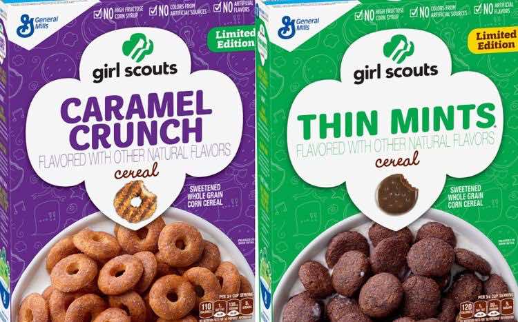 General Mills announced this week that they will be making Girl Scout Cookie themed cereals with Thin Mint and Caramel Crunch flavors, the second of which will be based off of Samoas.