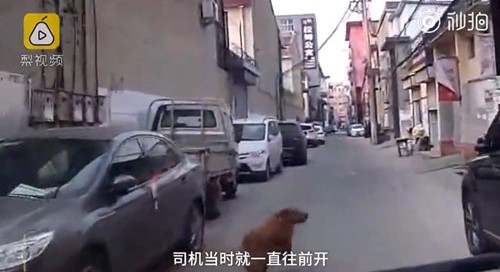 Dashcam footage shows the dog anxiously looking over its shoulder several times in order to make sure the paramedics are following it before the pup picks up speed and runs through the maze of alleyways.