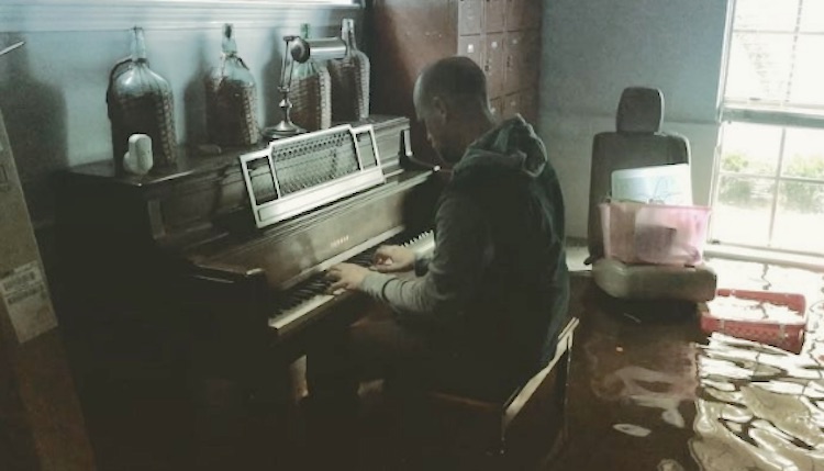 The video of the father sitting at the mini upright piano amidst knee-deep floodwaters was quickly viewed thousands of times, until it was eventually seen by Grammy nominee Vanessa Carlton.