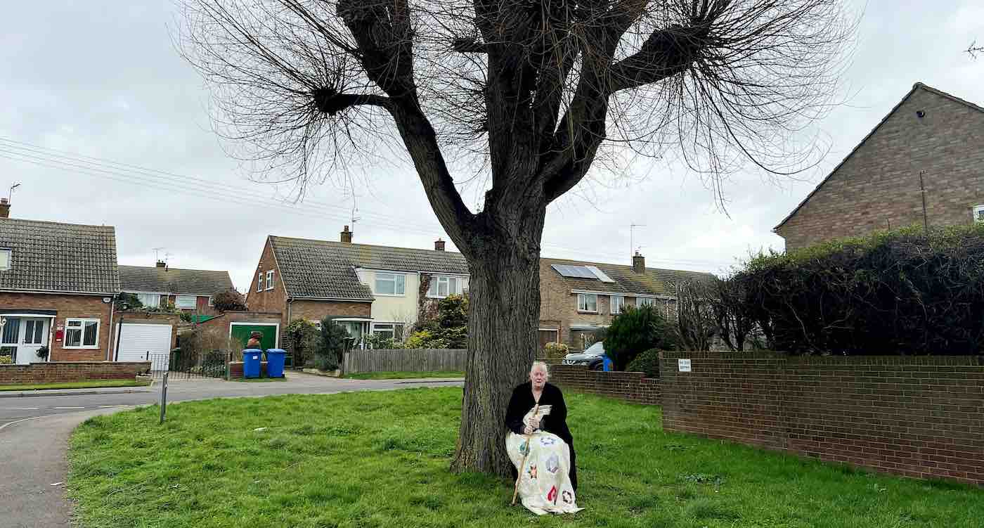 Grabbing her walking stick, a chair, and quilt, the 70-year-old bundled up for the cold and planted herself at the foot of the tree.