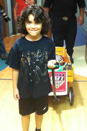 The 9-year-old son of a rock guitarist from the band Great White who died in the 2003 nightclub fire that killed 100 has dedicated his life to bringing toys and smiles to sick children in the hospital.