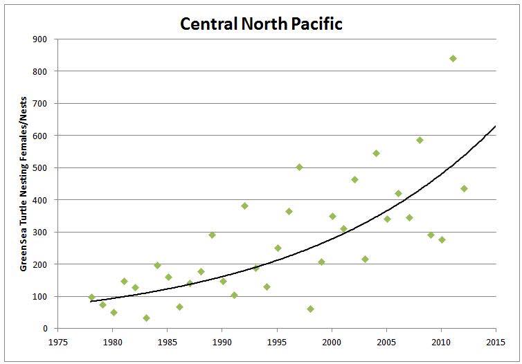 There are now 2,250 nesting females in Florida alone, up from just a handful in 1978. The graph below shows the increase along the Pacific coast.