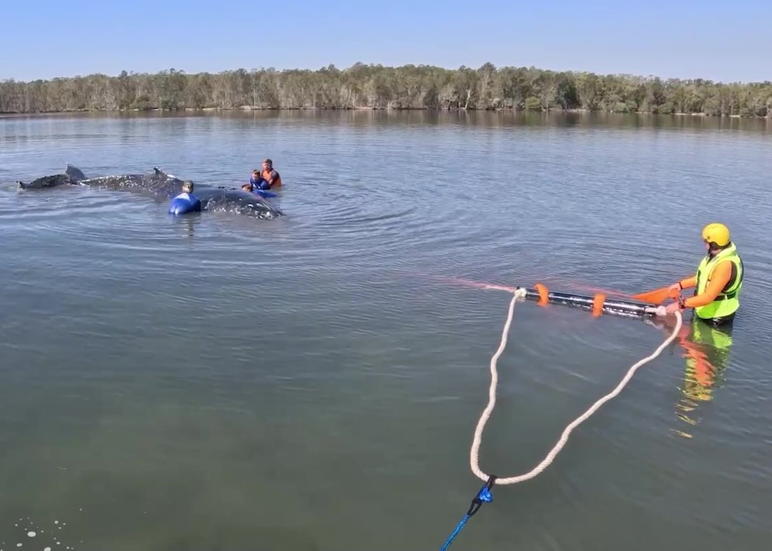 “Despite the ordeal, the whale is in a good condition with some minor skin issues from being in the sun, and while it remains in the Wallis Lake area, we are hopeful it will now be able to navigate its way back out to the open ocean.”