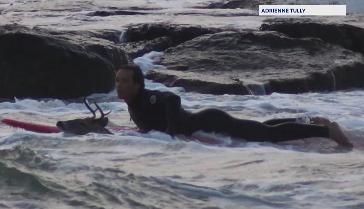 “There was a nice surfer, I don’t know his name, but he eventually tried to guide the deer out. The deer came out and then just ran north on the beach, you know, far away from any people and I’m sure he’s fine,” said Tully.