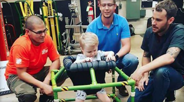 These three retail workers didn’t have to go out of their way to create a walker for this disabled toddler – but that didn’t stop them from doing it anyway.