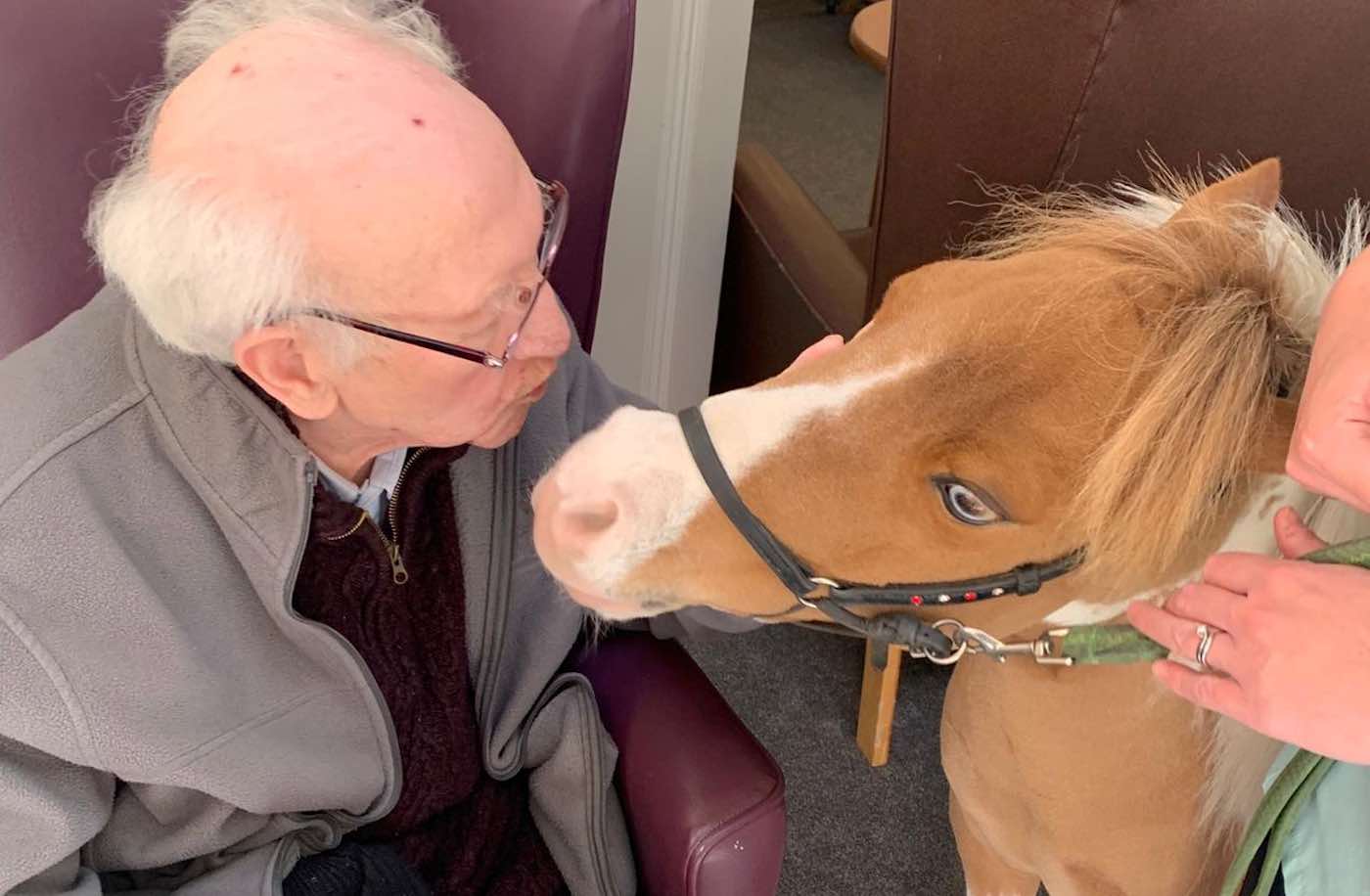Dementia sufferers at a nursing home who cannot see relatives were “overjoyed” by a morale-boosting visit from a miniature horse.