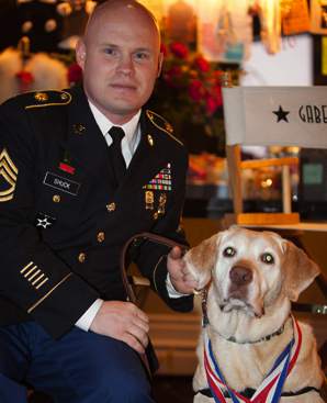 The stories focus on the eight dogs that won in different categories, like service dog and family pet. But it was Gabe, a big yellow lab in the military dog category, that took home the grand prize. His handler, Sgt. Charles Shuck, began working with Gabe in 2006 when, believe it or not, he was told to go to the local shelter and pick a dog. After training, he completed 210 missions in Iraq sniffing out explosives and ammunition.