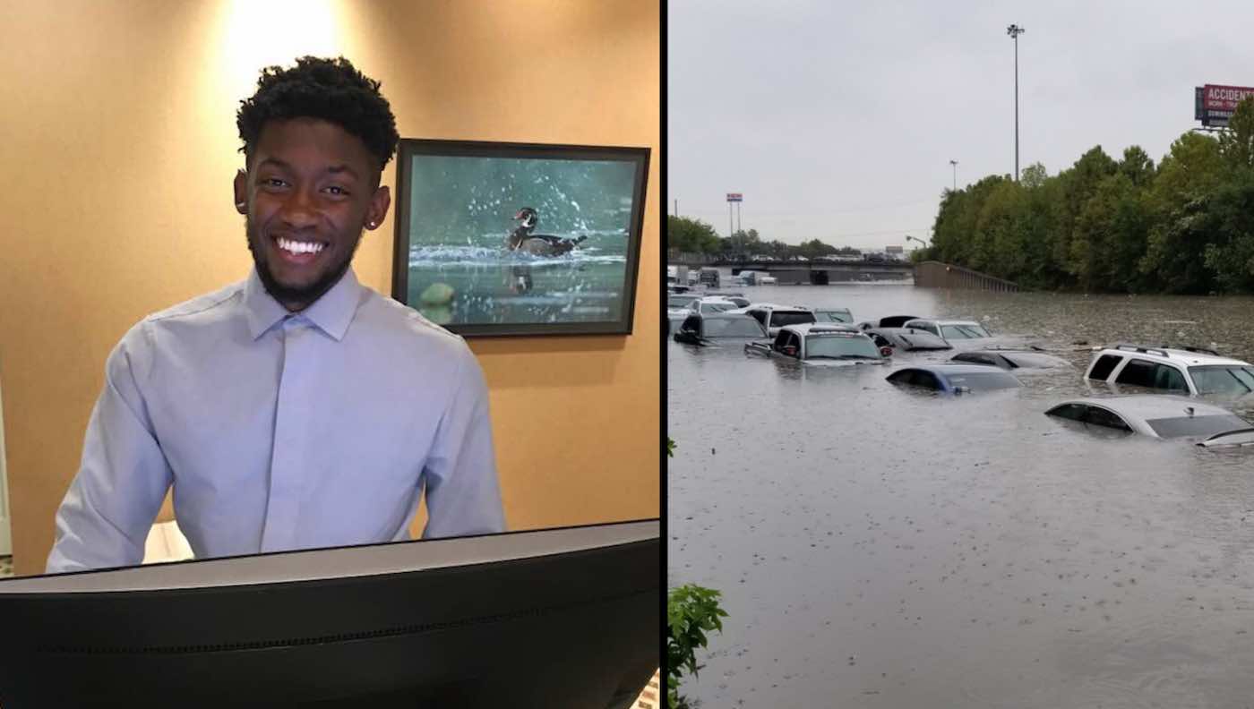 When dozens of people were trapped inside of a Texas hotel amidst torrential flooding earlier this week, a 21-year-old employee was hailed as their hero.