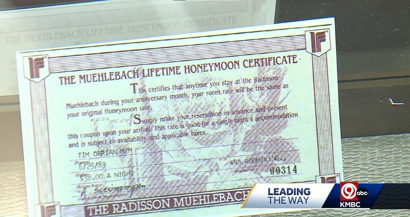 Fast forward to 2023, and the couple is preparing to celebrate 40 years of partnership, and that’s when combing through their wedding album they came across a gift certificate certifying that “anytime you stay at the Radisson Muehlebach during your anniversary month, your room rate will be the same as your original honeymoon rate.”