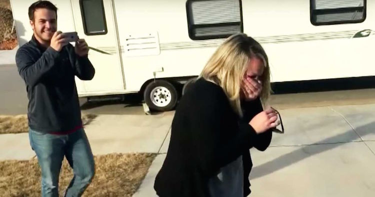 For the big reveal, Micah positioned the RV in front of their home and lead his wife outside, with hands over her eyes.