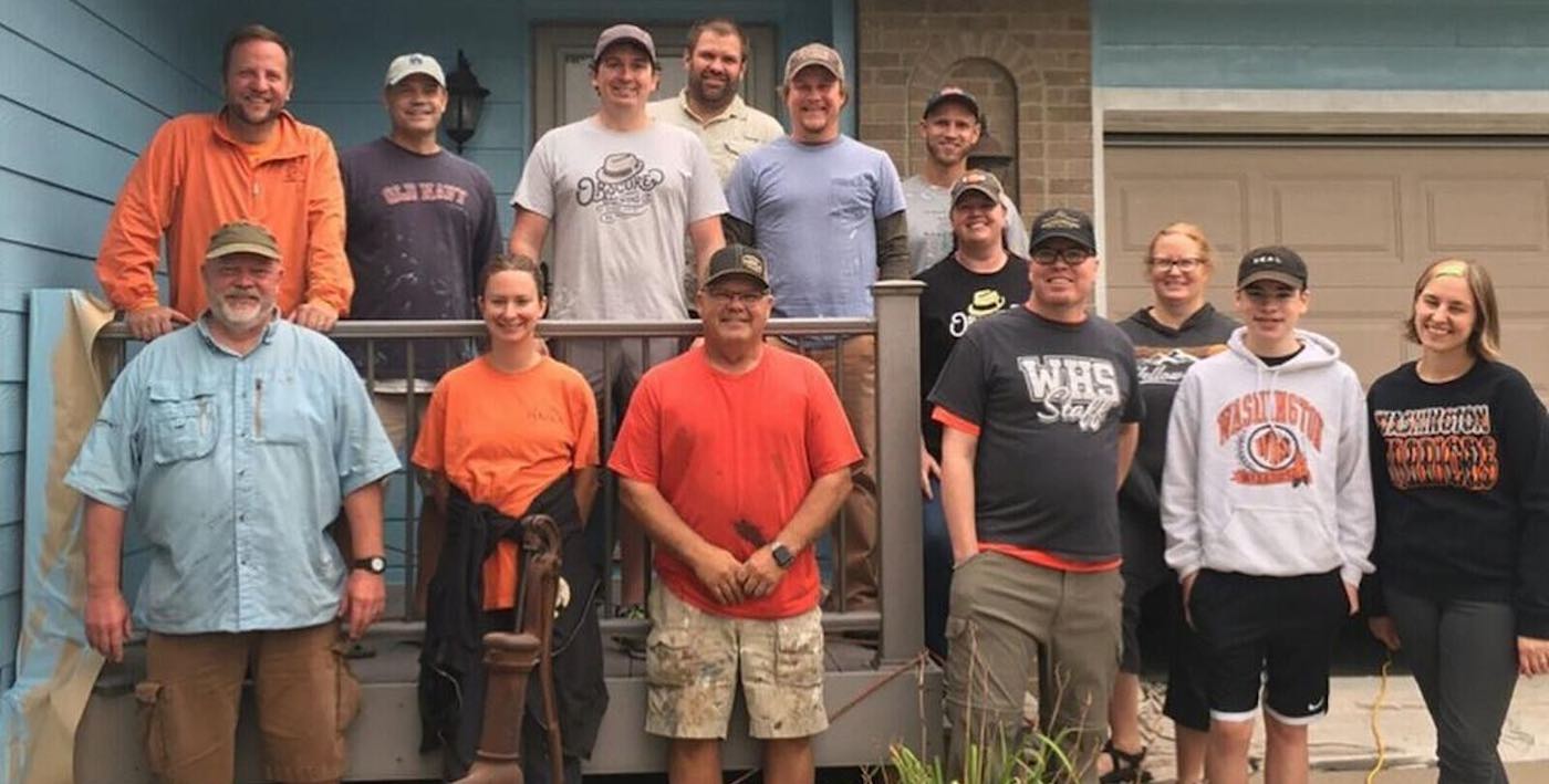 Five hours later, after the facade of the once brown house was light blue, everyone celebrated with an impromptu get-together in the family driveway.