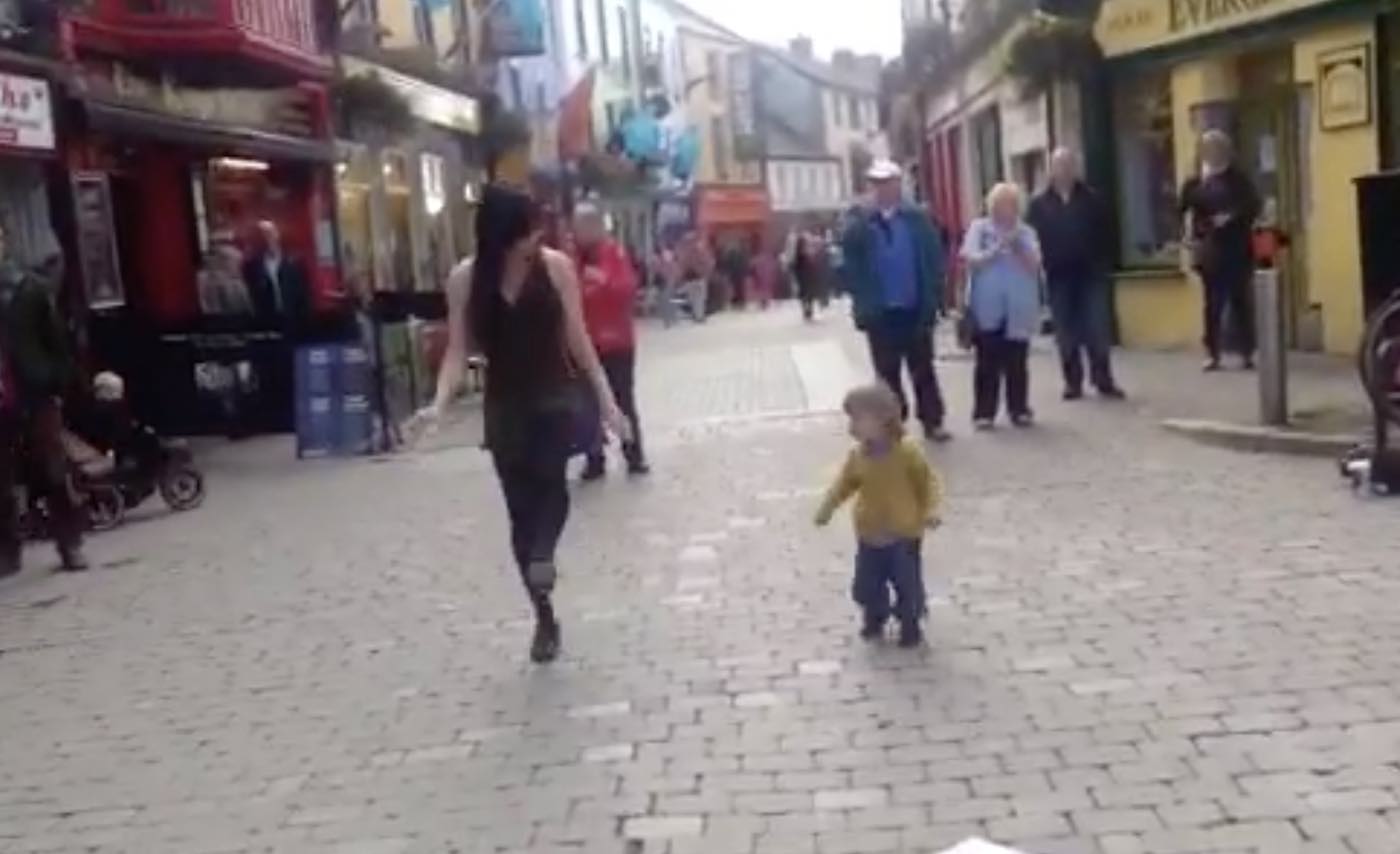 In an adorable video clip that was published by Galway Now Magazine back in 2016, a woman can be seen tap dancing in the street for tips when she is suddenly joined by a pint-sized fan.