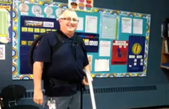 Using his vacuum, Ron started vacuuming shapes and pictures into the rugs for the kids to find in the morning. His images have included Charlie Brown, the White House, the Red Sox logo, and a witch for Halloween. Then every day without fail, the kids rush into the classroom to see what the next creation could be.