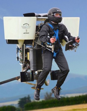 The brainchild of inventor Glenn Martin who unveiled his machine last July, the jetpack is capable of travelling 30 miles in 30 minutes on a full tank of fuel.