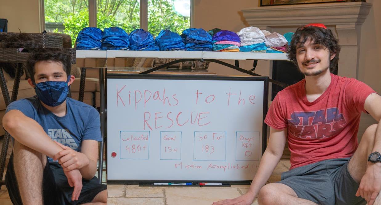 Matthew and Jeremy Jason had already been volunteering every Friday with an organization that feeds the hungry in downtown Houston. After the COVID-19 pandemic started, they came up with the idea of using the traditional skull caps worn during religious events and turning them into face masks.