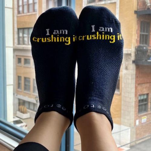 Schmidt has received numerous testimonials from customers who’ve shared their journeys of perseverance which were uplifted by the simple act of looking down at their socks. That’s not surprising, since previous research has shown positive affirmations can reduce stress, increase self-esteem, and enhance overall well-being.