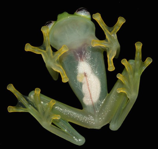 Hyalinobatrachium dianae has been documented online, including a special mention of his horizontally-shaped pupil and its resemblance to a certain someone.