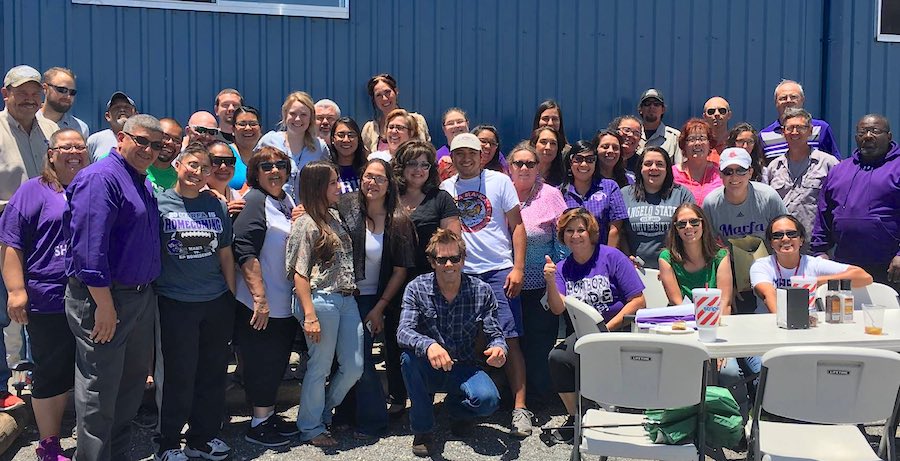 While on location in the small town of Marfa, Texas, Kevin Bacon used his free time to drop by a school district end-of-year teacher recognition party.