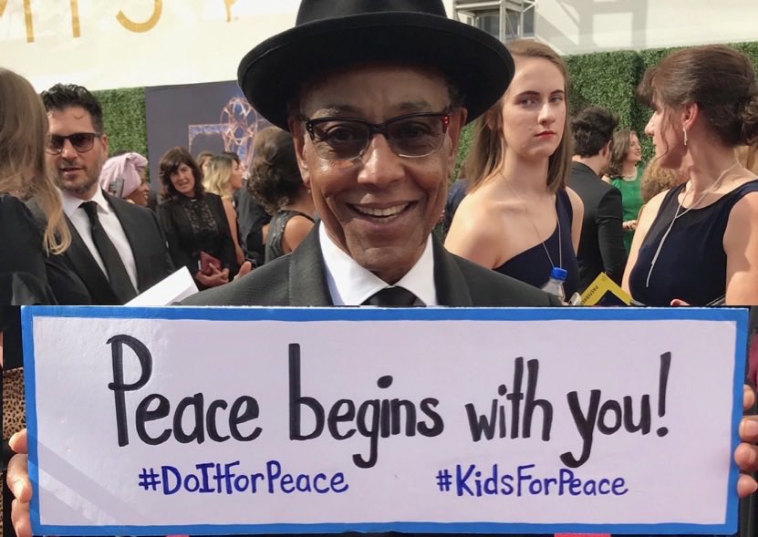 Scheduled as a presenter onstage during the evening’s gala was the Kids for Peace Celebrity Ambassador, Giancarlo Esposito, who is an award-winning film and television actor (Breaking Bad, Better Call Saul, and Do the Right Thing) who understands the importance of what the kids are trying to do. Beyond chatting with them on the Red Carpet, he is joining them in a global campaign beginning next week—called #DoItForPeace—which aims to galvanize a billion people to do acts of peace within ten days, for which Good News Network and Peace One Day are major partners.