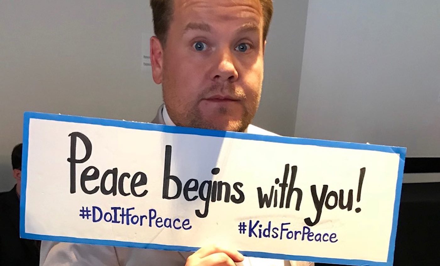 Topping off their experience, was a serendipitous drop-the-mic-moment with the wildly fun talk show host James Corden backstage. After receiving two Creative Arts Emmys, which honors outstanding artistic and technical achievement in a variety of television genres, he happily posed with the Kids For Peace sign, with the message of “Peace begins with you!”