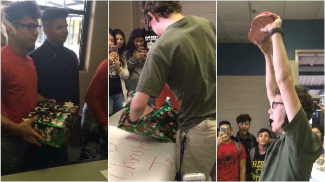 When he told one of the school’s junior year students that he was squeezing into size 10 shoes everyday, the teen started a school-wide donation drive to buy J.R. some new kicks.