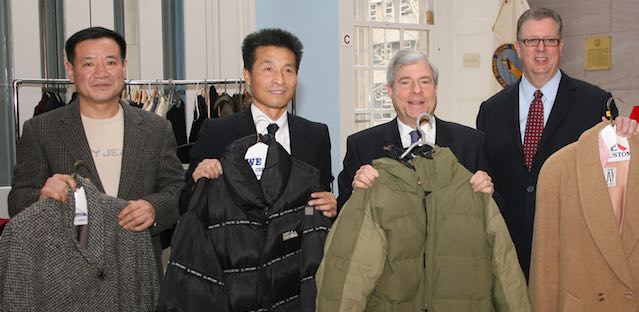 80 boxes of coats, suits, shirts and pants were collected by the Korean Dry Cleaners Association of New York. They spent six months gathering the items from launderers across the city as part of their “Clothes of Love” program.