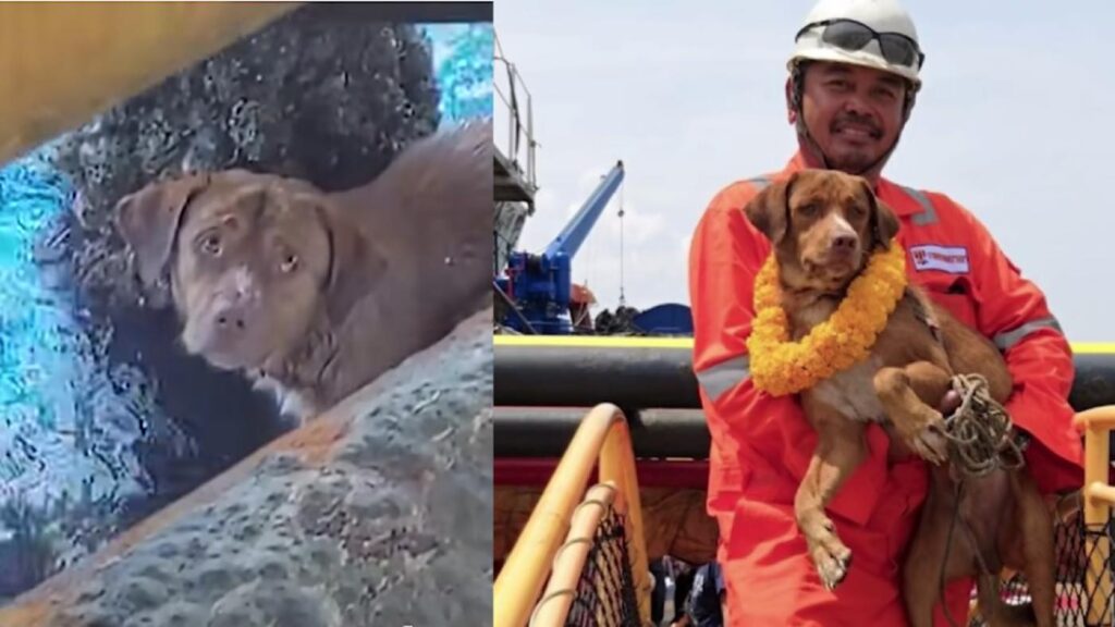 When you’re working on an oil rig in the middle of the ocean, you expect to see the occasional whale or dolphin swimming by, but a stray dog? Not so much.
