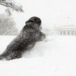 Bo, the Obama’s family pet, plays in the snow during a blizzard on the south grounds of the White House, Feb. 10, 2010. (Pete Souza)