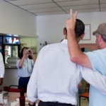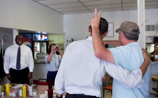 “Sometimes the unexpected happens. At a cafe in Missouri, I was trying to capture patrons snapping photos of each other with the President when this guy did what wise-guys do.” (Official White House Photo by Pete Souza)