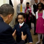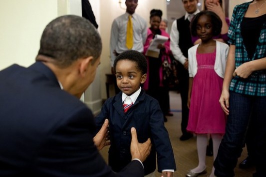 President Obama greets his mini-me, a young visitor to the Oval Office, Feb. 5, 2010. (Official White House Photo by Pete Souza)