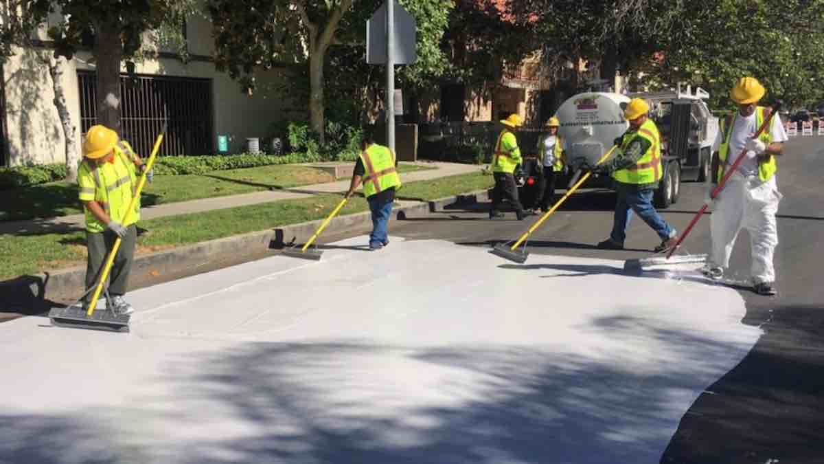 In a bid to combat climate change and spur cooler summer weather, Los Angeles city workers are painting their streets grey.