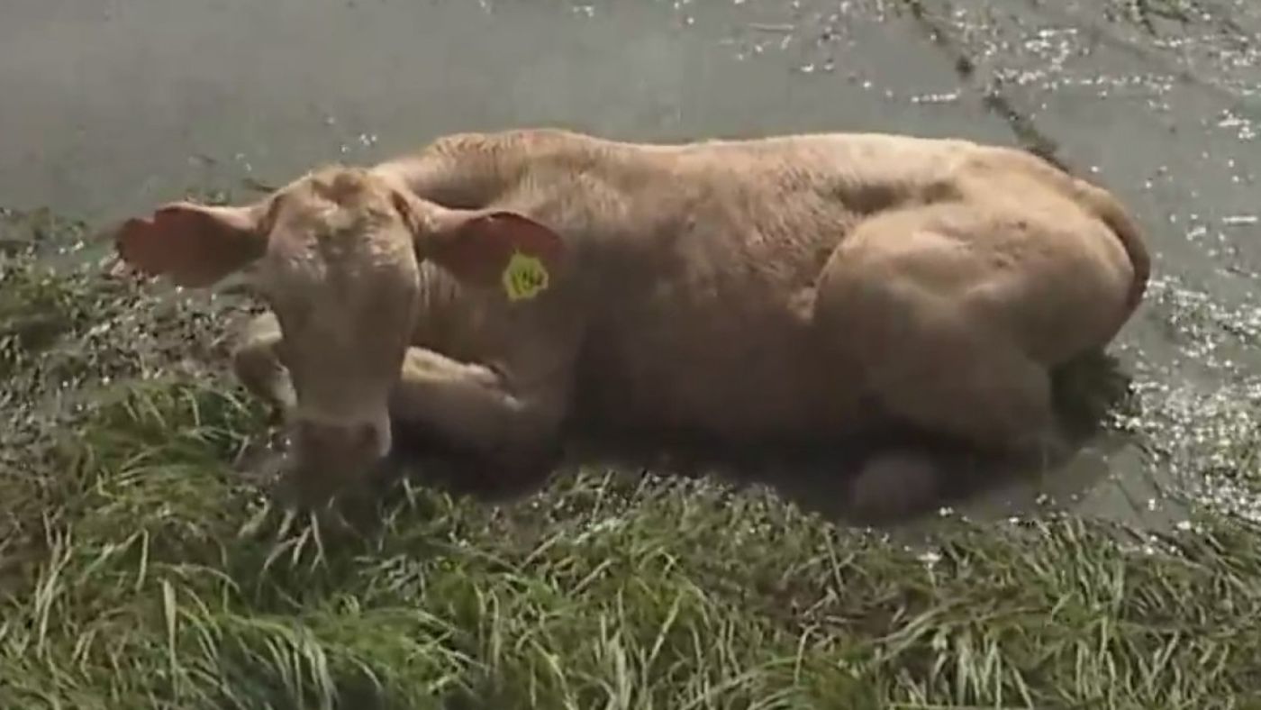 The exhausted bovines aren’t always 100% cooperative, but at present, the rescuers are taking a “no cow left behind” attitude.