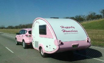 She bought a T@b trailer in October that she would tow with her car, and had it detailed in the same custom pink. She waded into a sea of new anxieties: How would she know which bridges the trailer would fit under, how do you hook up electricity, what if I need to back up the car, how do you empty the toilet, are there wild animals in these campsites? With so may internal challenges needing navigation, did she need a whole set of new issues? The logistics were keeping her awake and she hadn’t even picked up the trailer yet.