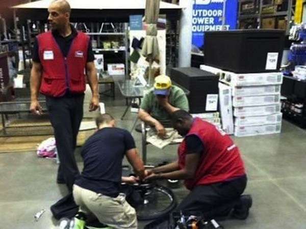 Three employees stayed an hour past the store’s closing time to fix the old wheelchair, and did so without any charge to the Marine veteran.