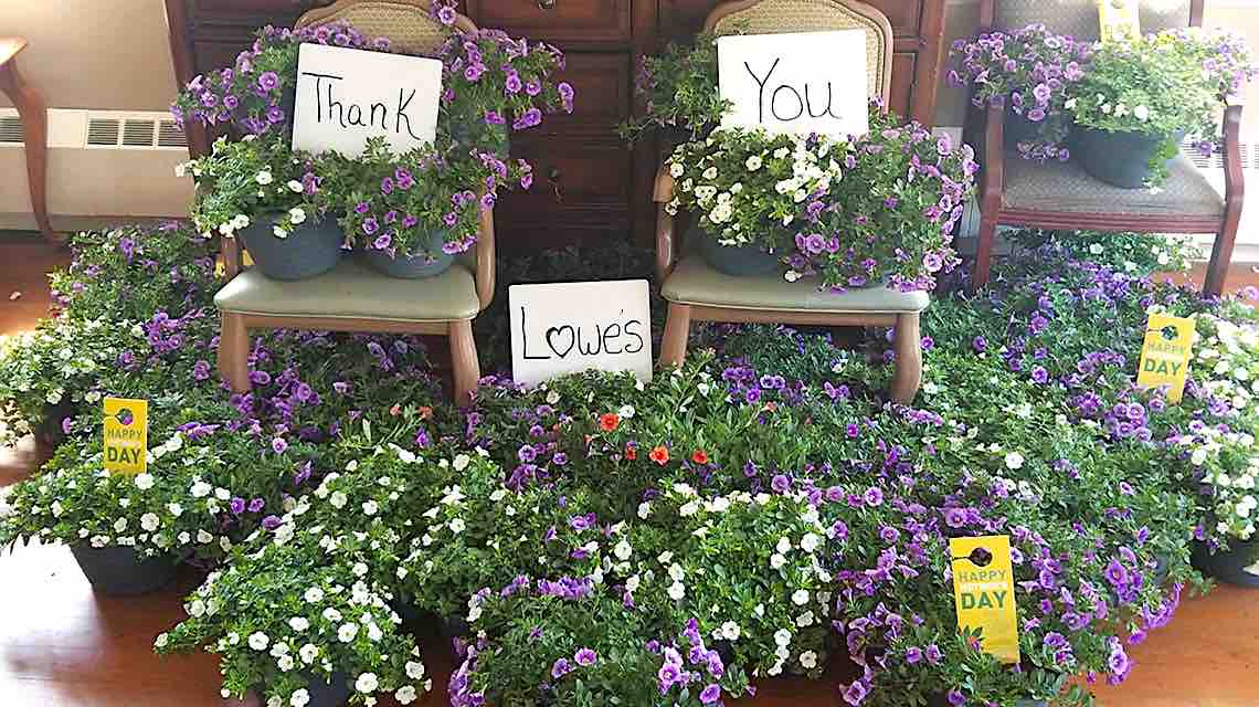 “Thank you for your generosity in this difficult time and for for thinking of us,” said a spokesperson at the Sippican Healthcare Center in Massachusetts. “Lowes brought sunshine to both the residents and essential staff.”