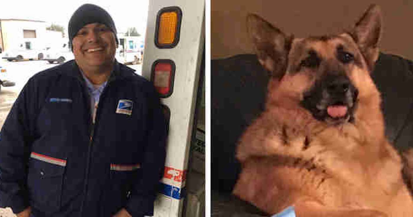 Gretchen the German shepherd always used to look forward to seeing her mailman Fernando Barboza arrive at her door – so when she passed away earlier this month, her owners presented the postal worked with a note and a bag of dog treats.