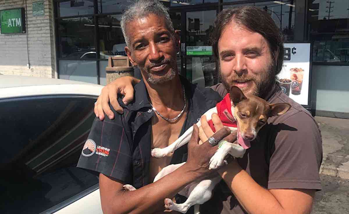 Mel, who is a 9-month-old rat terrier mix, ran away from Darge’s office in East Hollywood, California earlier this month, and it didn’t take long for her to make some friends amongst some homeless men named James and Andy.