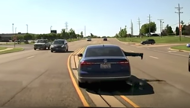 The endangered driver first caught the attention of police, and the local Dixon, Illinois man Randy Tompkins, when his car started rolling through traffic onto the wrong side of the road.