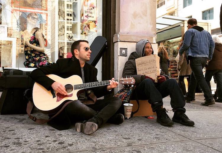 That’s why Chris has been playing his guitar next to homeless people around New York City for almost two years.