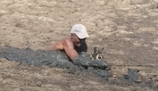 A man dove into a pit of mud for one heroic reason: to rescue a female impala that had become trapped in the muck.
