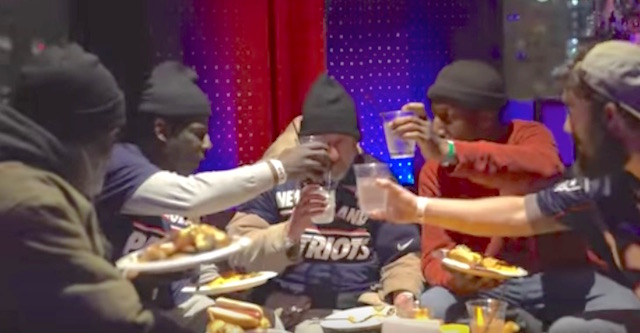 The men were treated to Patriots jerseys, drinks, a buffet of classically delicious Super Bowl snacks, and prime seats for watching the game.