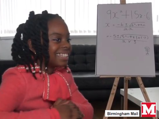 The talented girl from the UK’s West Midlands area enrolled in a distance learning college and is already top of the class, having recently scored 100% in a math exam.