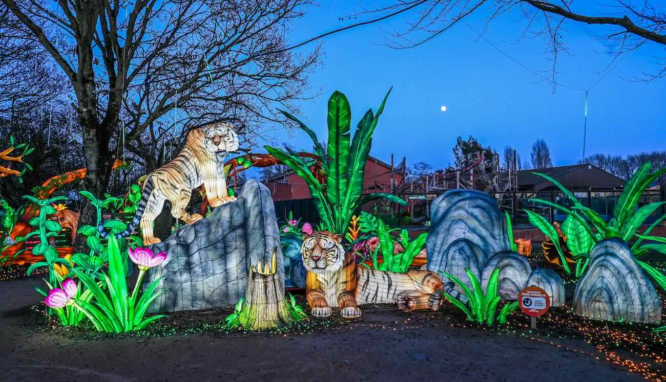 Thousands of hand-crafted and hand-painted lanterns lead visitors along the mile-long trail meandering through the zoo to transport visitors into rainforests and ocean habitats and plants.