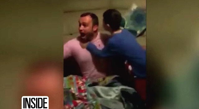 They didn’t expect their father to be back from three months of military service, so they got quite a surprise when opening the wrapping paper.