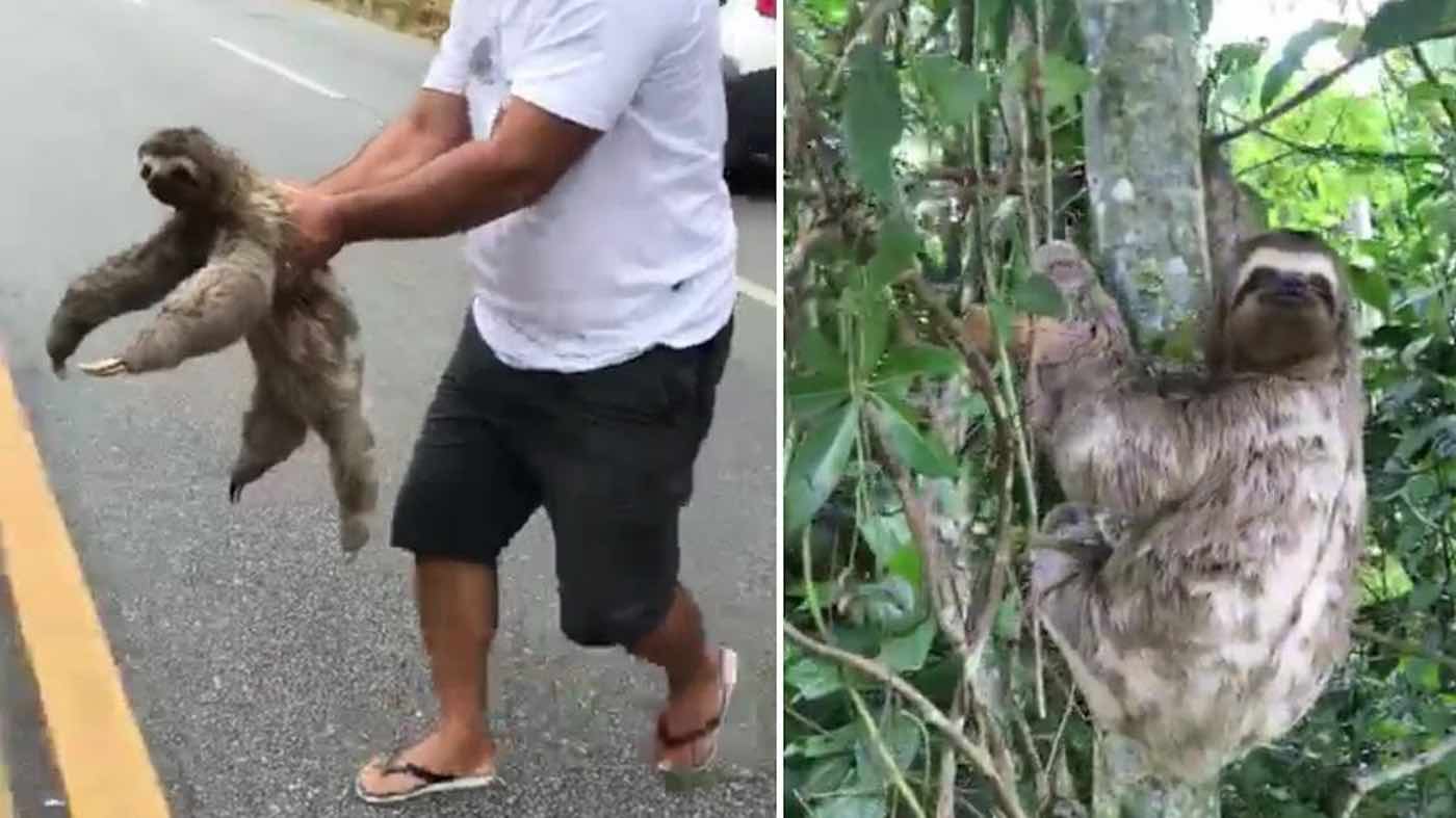 Un autodenominado amante de los animales, José Aldenizio de 50 años, supo que tenía que rescatar a la criatura del tráfico que se avecinaba -así que se acercó al oso perezoso, lo levantó en sus brazos, y lo llevó a al otro lado de la calle.