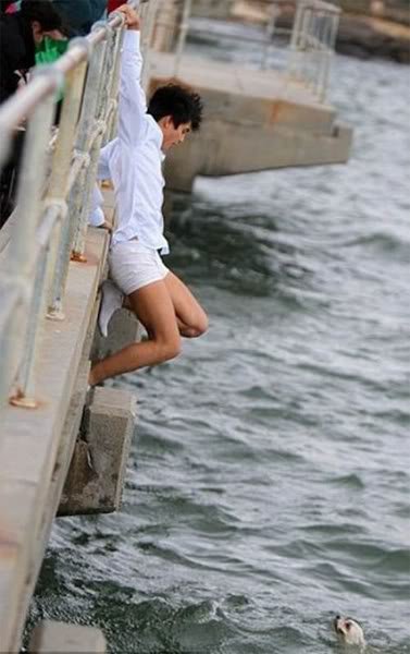 Before she could react, however, Soemawinata tore off his pants and jumped into the sea.