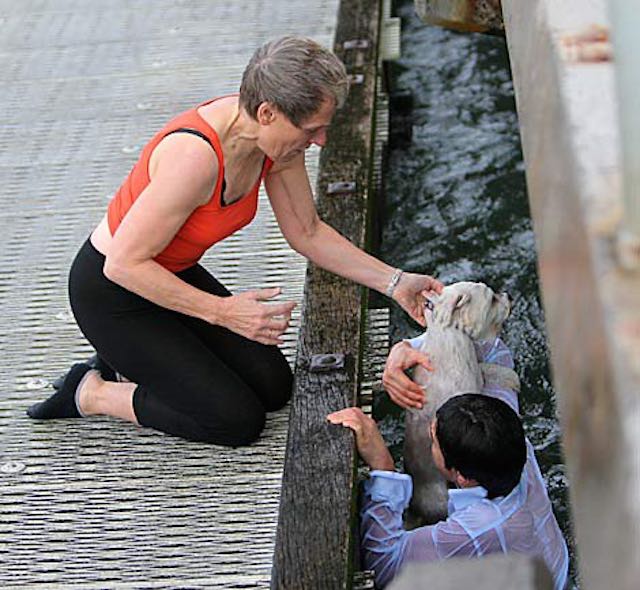 This fashion model wasn’t afraid of jumping into choppy ocean waters if it meant saving the pup who had been blown off of a pier.